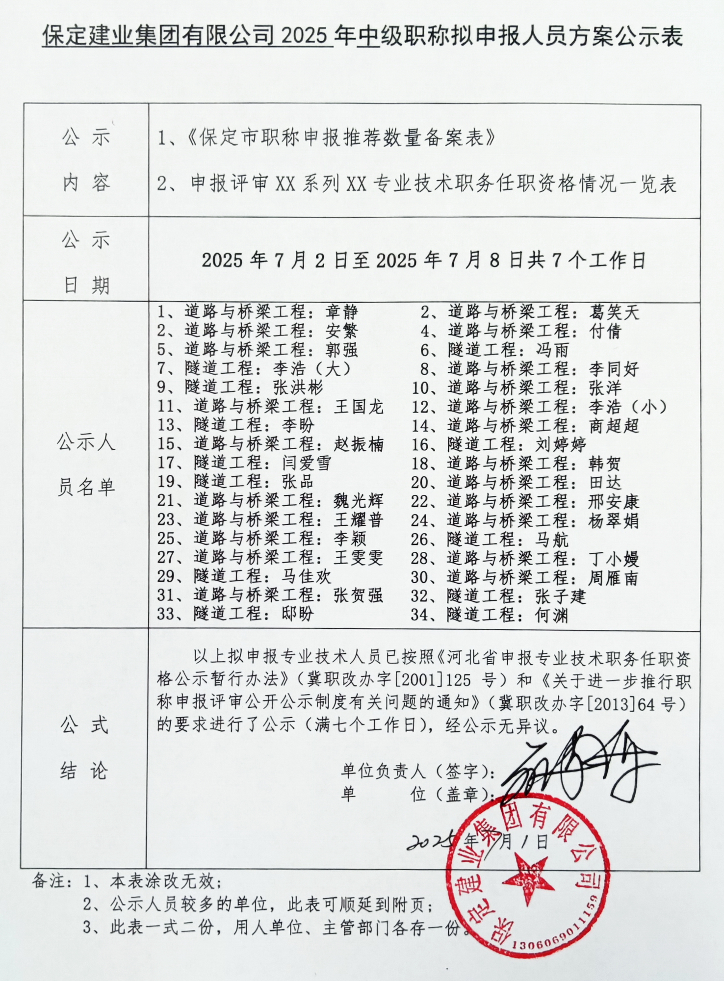 保定建業(yè)集團2025年中級職稱擬申報人員公示二