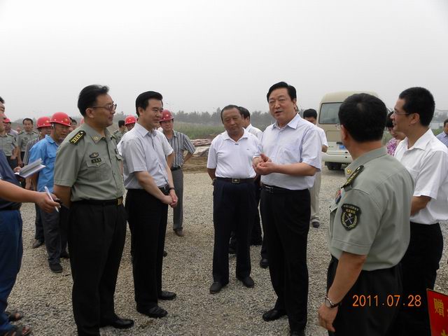 董事長(zhǎng)張?zhí)m柱陪同市委書記宋太平、市長(zhǎng)李謙視察工地