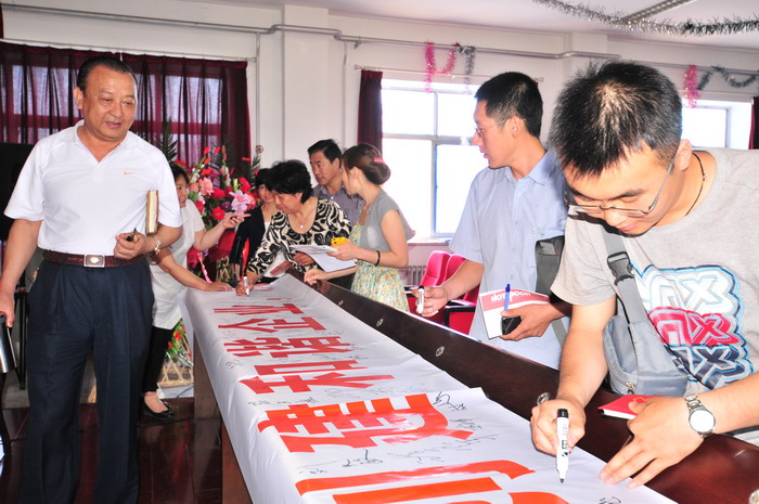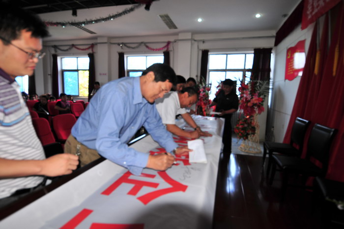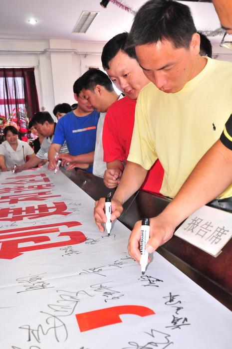 參會人員在“科學發展,安全發展,創建和諧企業,從我做起”條幅上簽字